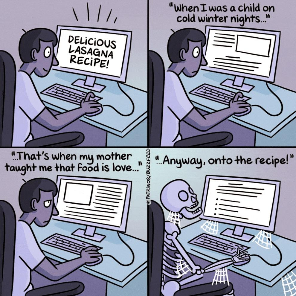 Meanwhile, your readers JUST WANT THE FORKIN’ RECIPE.
